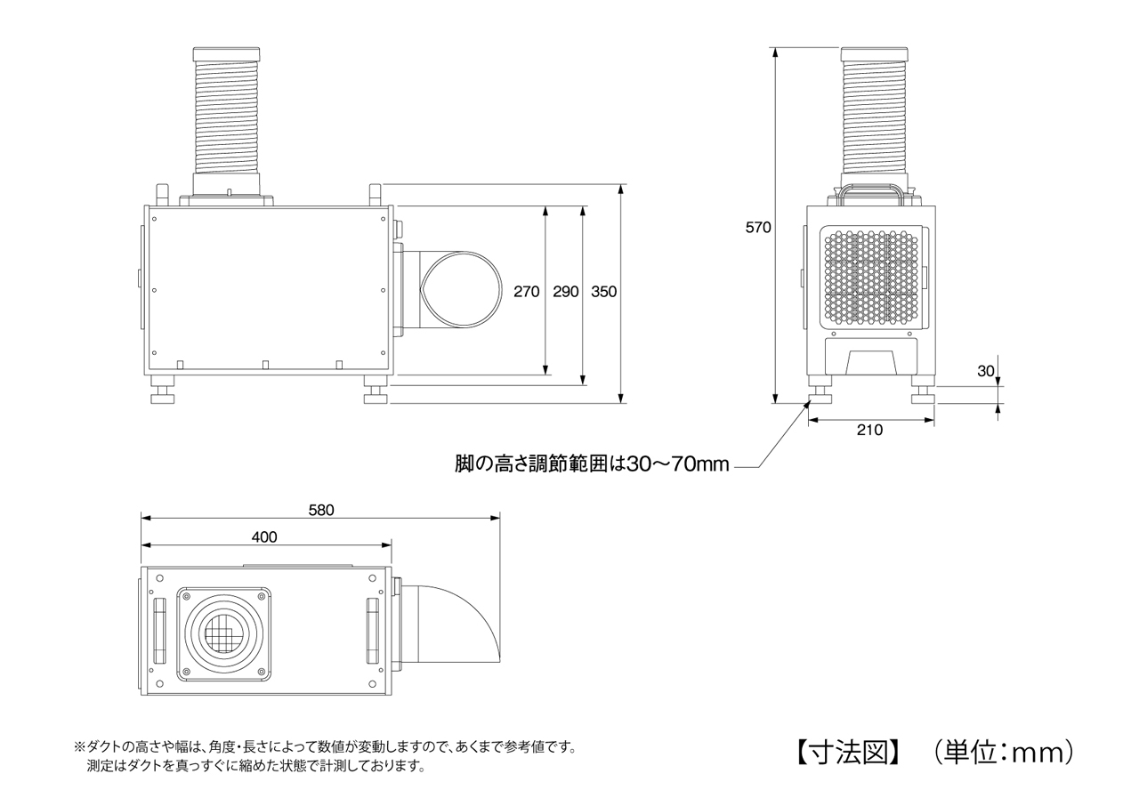 W210×D580×H350〜390mm |